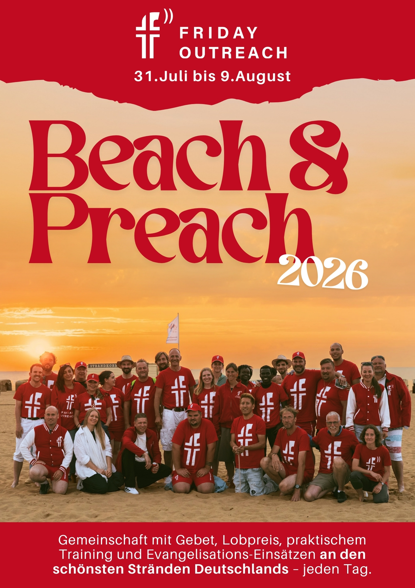 Das wird heiß: Urlaub und Evangelisation verbinden. Dein Urlaub bekommt einen Sinn und Menschen werden an den schönsten Stränden Deutschlands mit dem Evangelium erreicht. Früh gibt es Gebet, Lobpreis und Training und dann geht’s zum Wasser. Baden, Spaß und Jesus! 479 € für 10 Tage inkl. Vollverpflegung. Transport zu den Einsatzorten mit den Autos der Teilnehmer.