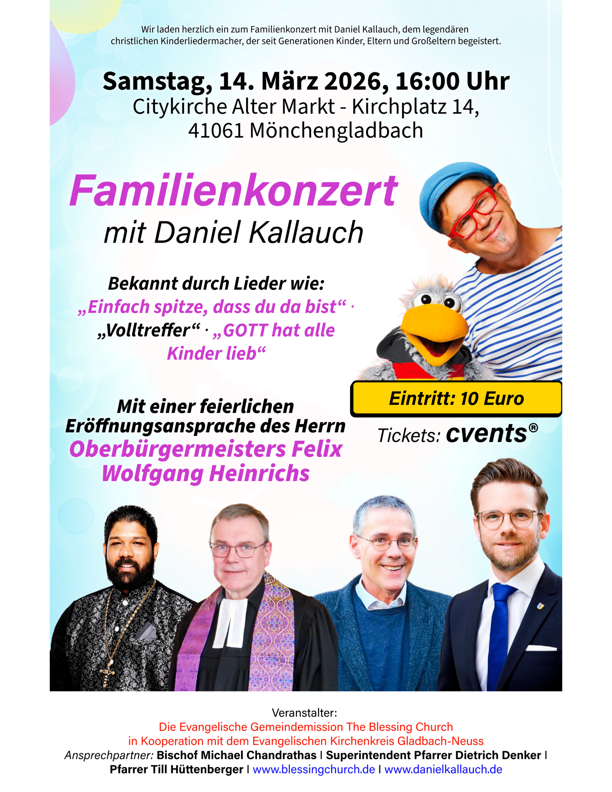 Am Samstag, den 14. März 2026, um 16:00 Uhr, wird der bekannte christliche Kinderliedermacher Daniel Kallauch auf Einladung von Bischof Michael Chandrathas ein Familienkonzert gestalten.
